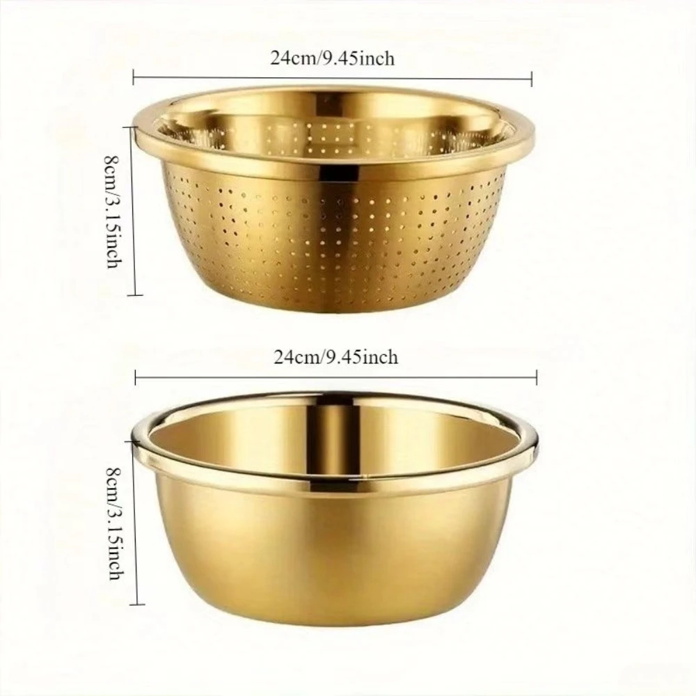 Stainless Steel Mixing Bowls & Strainer Set – Flour Sifter/Dishwasher Safe for Rice Veg Fruit, Heavy Duty Comm Kitchen Tools