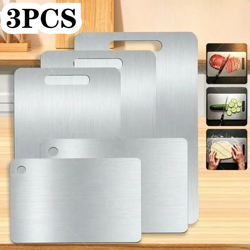 3PCS Stainless Steel Chopping Board – Thickened 2-Side NonSlip for Meat/Fruit/Dough, Dishwasher Safe Kitchen Cutting Board