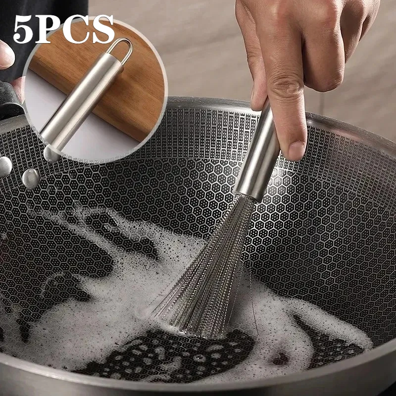 5PC Stainless Steel Scrub Brushes | Heavy Duty Rustproof for Pots Pans | Long Handle Dishwashing Tools Home & Commercial