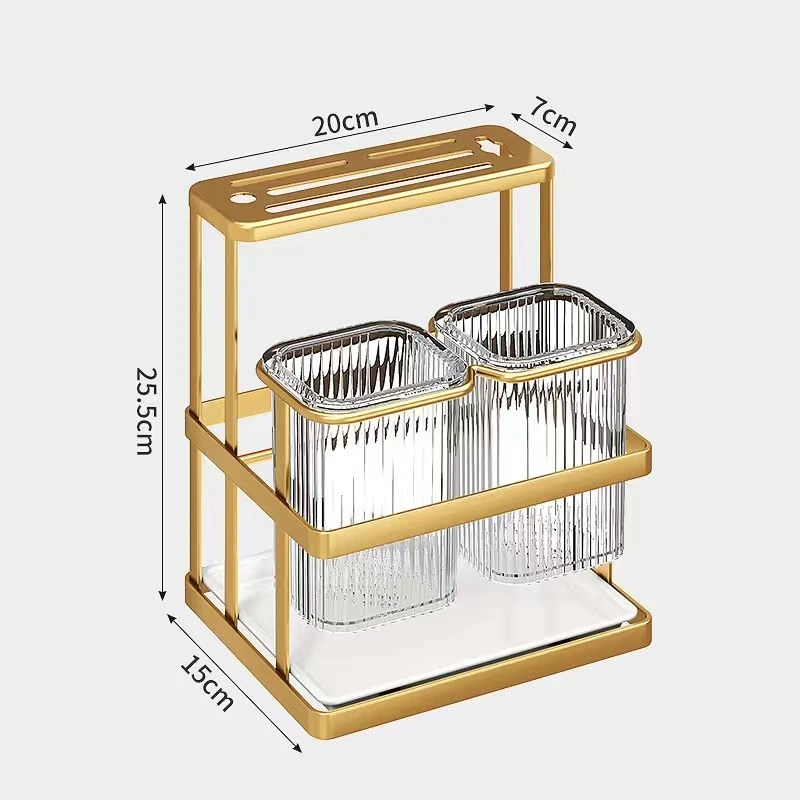 Kitchen Organizer Stand with Knife Holder & Drain Basket, 2-Tier Utensil Storage for Forks Spoons Chopsticks