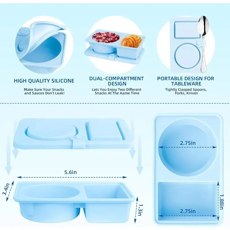 Double Compartment Silicone Containers – Leak-Proof Bento Box for Snacks, Salad Dressing & Meal Prep, Reusable & Dishwasher Safe