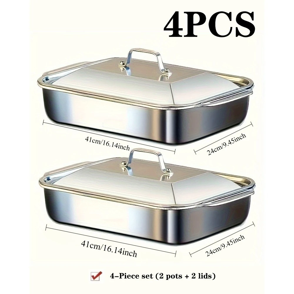 Seja o primeiro a avaliar “4-Piece Stainless Steel Baking Pan Set with Lids-16”x9” Deep Dish for Fish/Pasta/Grilling Oven & Dishwasher Safe Cookware 4.2L”
