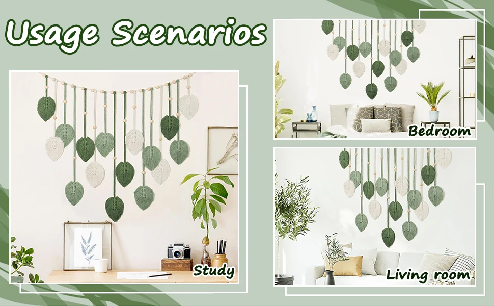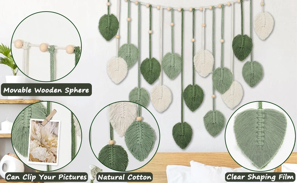 Painel de Macramê com Folhas e Borlas em Estilo Boêmio, 120x75cm, Decoração Chique para Casa, Enfeites para Quarto, Presente de Natal DECORAÇÃO DE PAREDE ELEGANTE COM FOLHAS - Lindo painel de macramê para parede com design de folhas feito à mão. Perfeito para preencher paredes vazias e adicionar um toque boho a qualquer ambiente. Combina com diversos estilos de decoração, como sala de estar, quarto ou escritório. ALTA QUALIDADE - Feito com fio de algodão natural, haste de madeira e contas. Tamanho: 120x75cm. Importante: Não remova a película protetora na parte de trás. Se emaranhar, basta passar a ferro ou pentear para restaurar o formato. MULTIUSO - Use como arte de parede ou para exibir fotos. Fácil de pendurar com os prendedores nas borlas. Ideal para colocar acima de camas, sofás, lareiras ou mesas. ÓTIMA OPÇÃO DE PRESENTE - Presente ideal para aniversários, inaugurações de casa, Natal ou Dia das Mães. Um presente elegante e prático para familiares e amigos. SATISFAÇÃO GARANTIDA - Oferecemos garantia de satisfação total. Entre em contato conosco caso tenha alguma dúvida antes ou depois da compra.